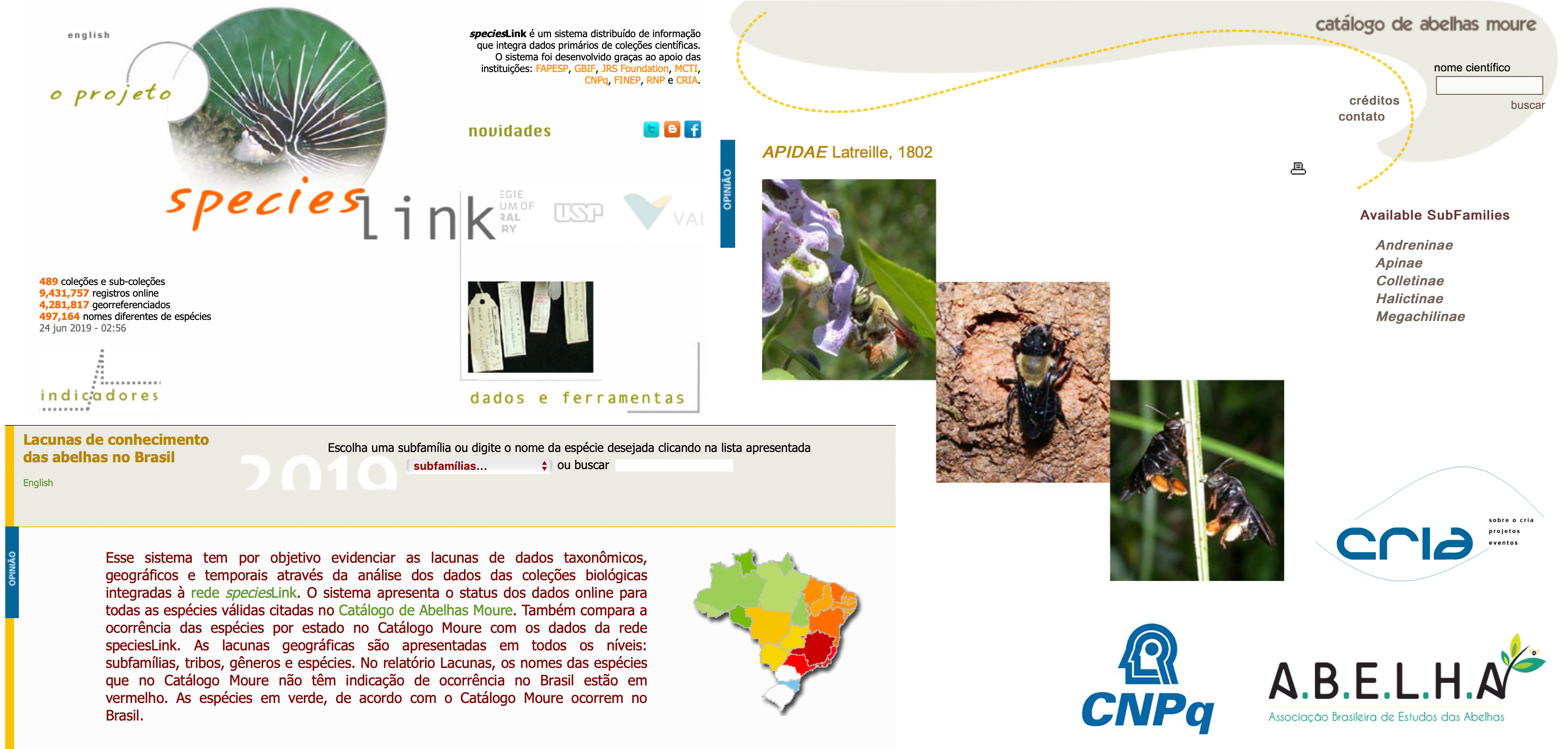 - Criação e organização do Sistema Lacunas - iniciativa já realizada com plantas no Herbário Virtual da Flora e dos Fungos), e que vai facilitar a identificação de lacunas de informações taxonômicas e geográficas de espécies de abelhas no Brasil.