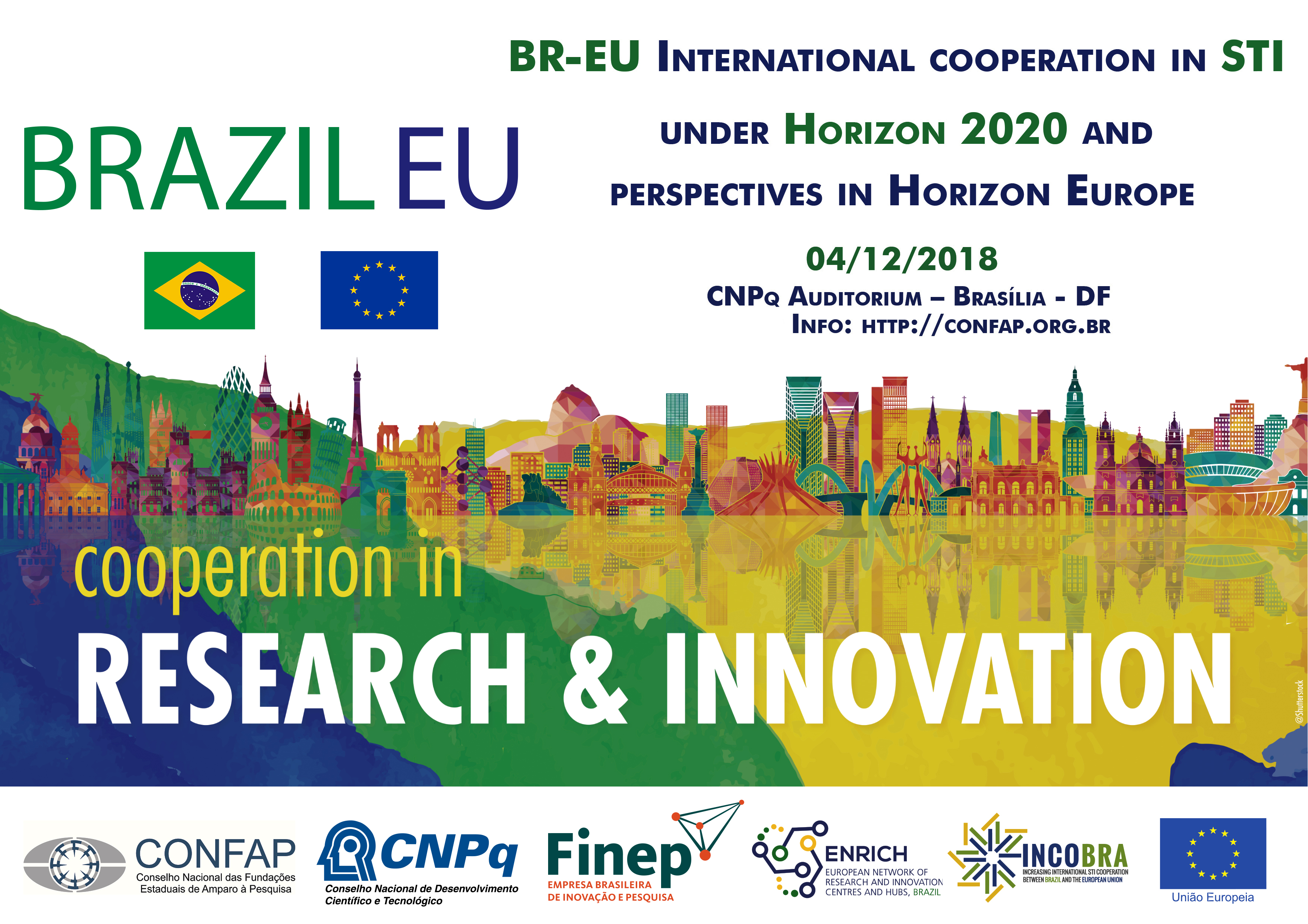 Estão abertas as inscrições para evento que discutirá os dez anos da cooperação internacional em Ciência, Tecnologia e Inovação entre o Brasil e a União Europeia. Podem participar representantes dos departamentos de relações internacionais das Instituições de Ensino Superior e da comunidade de inovação em geral. As palestras e discussões serão realizadas em 4 de dezembro, a partir das 8h30, no auditório do Conselho Nacional de Desenvolvimento Científico e Tecnológico (CNPq), em Brasília.Recentemente, a cooperaçao Brasil-UE foi reforçada por um acordo administrativo assinado entre a Directorate-General for Research and Innovation of the European Commission, o Conselho Nacional das Fundações de Amparo à Pesquisa (Confap), o CNPq e a Financiadora de Estudos e Projetos (Finep).O objetivo do evento é apresentar o que foi desenvolvido nos últimos dez anos em termos de cooperação internacional e disseminar as oportunidades no âmbito do Horizon 2020. Além disso, as discussões visam traçar futuros caminhos de cooperação a partir do programa, ainda em construção, Horizon Europe.Entre as atividades programadas para o evento, que contará com a participação de representantes da Comissão Europeia, está uma mesa redonda com as agências de fomento, além de apresentação dos mecanismos de cofinanciamento do Brasil e de boas práticas de cooperação no contexto do H2020.Durante a tarde será realizado um Training Camp, que visa abordar como os esquemas brasileiros de cofinanciamento de apoio aos programas de pesquisa europeus podem se alinhar com as oportunidades de cooperação internacional oferecidas pelo programa Horizon 2020. O evento é apoiado pelo projeto H2020 Incobra, que visa a orientar, aumentar e aprimorar as atividades de cooperação em atores de Pesquisa e Inovação do Brasil e da União Europeia.A sessão da manhã do evento será realizada em inglês e português e contará com serviços de tradução, já a sessão da tarde será realizada em português.Confira a programação completa. As atividades da parte da manhã serão transmitidas ao vido pelo link: http://video.rnp.br/portal/transmission.action?idItem=47722Coordenação de Comunicação Social do Confap