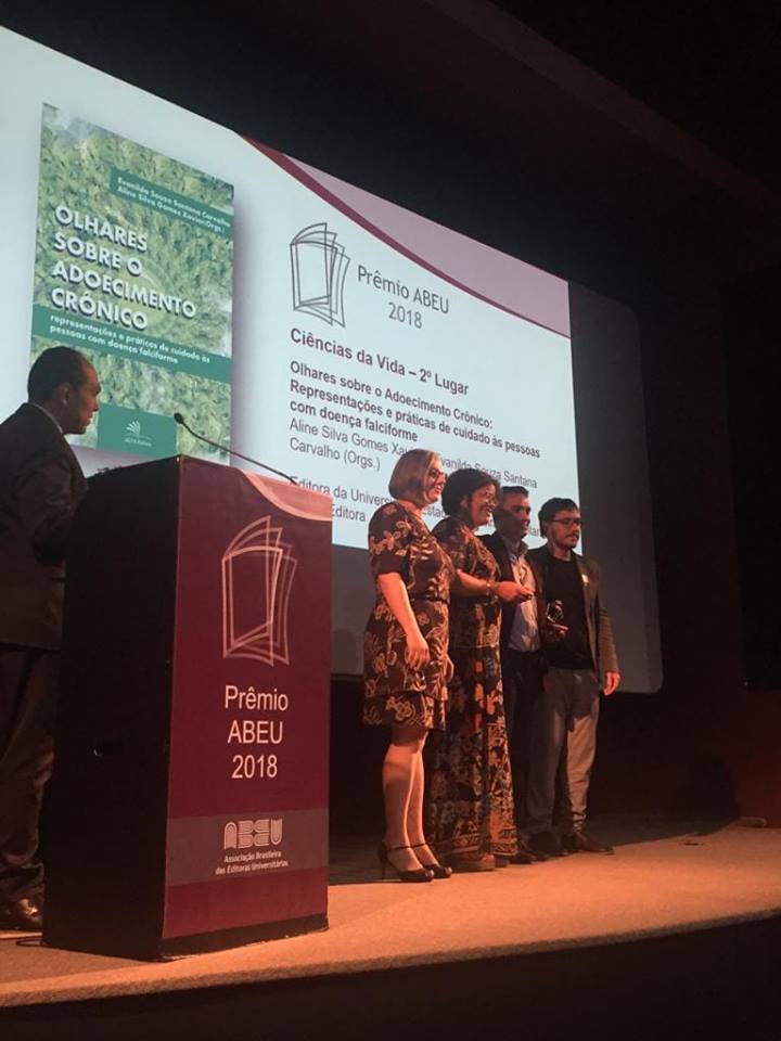 A doença falciforme é muito comum no Brasil, mas ainda desconhecida para a maioria dos brasileiros. Embora tenha sido descrita há mais de cem anos, as desigualdades de acesso à educação, serviços sociais e de saúde das pessoas adoecidas ainda não foram superadasA doença falciforme é muito comum no Brasil, mas ainda desconhecida para a maioria dos brasileiros. Embora tenha sido descrita há mais de cem anos, as desigualdades de acesso à educação, serviços sociais e de saúde das pessoas adoecidas ainda não foram superadas. Assim, visando reduzir a invisibilidade do problema que acomete grande parte da população, as enfermeiras, professoras da Universidade Estadual de Feira de Santana (UEFS), Evanilda Souza Santana Carvalho e Aline Silva Gomes Xavier, organizaram a obra Olhares sobre o adoecimento crônico: Representações e práticas de cuidado às pessoas com doença falciforme, julgada como uma das três melhores publicações brasileiras na categoria "Ciências da Vida", recebendo o 2o lugar no Prêmio ABEU 2018 da Associação Brasileira das Editoras Universitárias. A premiação aconteceu no dia 5 de novembro, na Cinemateca Brasileira em São Paulo.